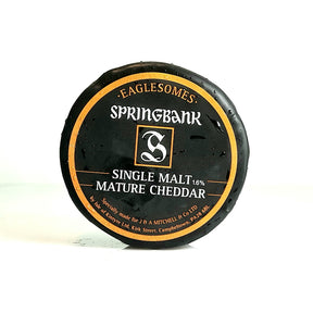 A lightly Springbank singlemalt flavoured artisan cheddar cheese, handmade in Scotland. A lovely little nibble by itself, pairs well with whiskies, adds a little extra flavour to recipes that need cheddar cheese